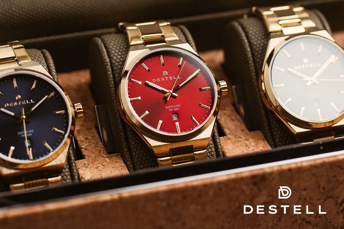 Od września w sprzedaży dostępna jest szeroka gama modeli DESTELL® – od klasycznych wersji po unikatowe kolorystyki. Wszystkie zegarki wyposażono w szkło szafirowe, wodoszczelność minimum 50 m oraz dekiel przystosowany do personalizacji poprzez grawer. Każdy model oferowany jest w eleganckim pudełku premium pokrytym skórą, co dodatkowo podkreśla prestiż marki i sprawia, że stanowi gotowy pomysł na prezent.